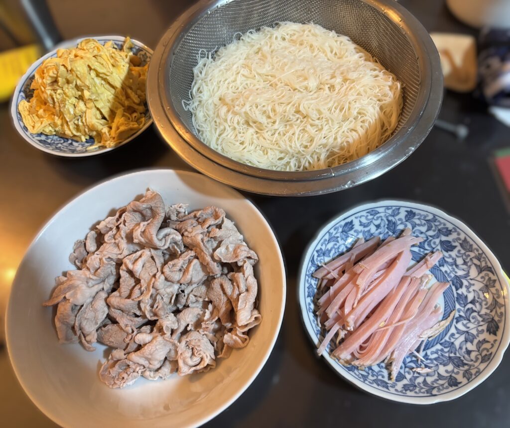 そうめんに合わせて卵やハム、お肉も合わせて作ったのでさらに美味しかったです。