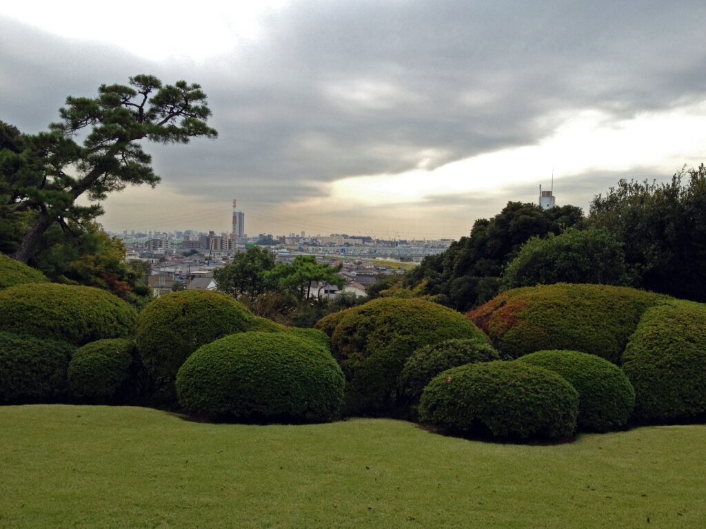 お話を聞くと、一面芝生に覆われた起伏のある地面,丸く刈り込んだ植木、石灯籠を置かない洋風な作りと、松などの日本らしい庭木との組み合わせで、明治以降に増える和洋折衷の庭の先駆けだそうです。