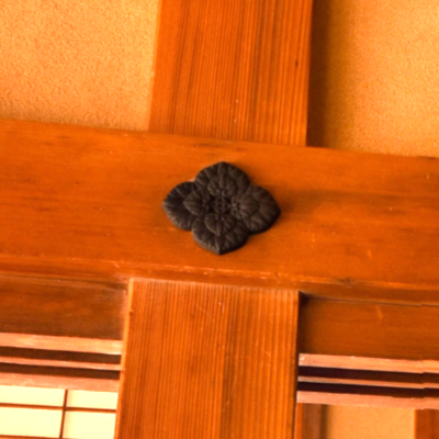 釘隠しや引手は葵の葉を4枚使ったデザイン、欄間は2枚葉の葵がモチーフにになっていて、「うーん、控えめでおしゃれ!」って感じ。