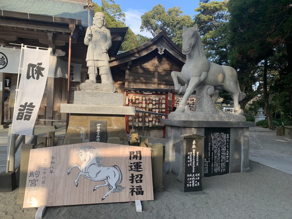 境内にもあちらこちらに馬がいました。「開運招福」の大きな絵馬がかっこいいです。