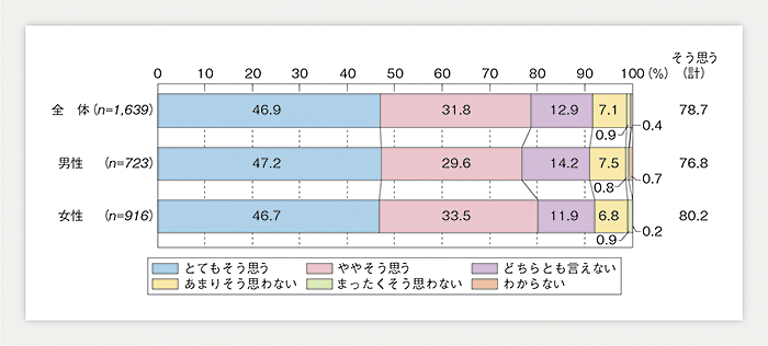 「家族と地域における子育てに関する意識調査」では子どもが小学校に入学するまでの間、祖父母が育児や家事の手助けをすることが望ましいと78.7%(とてもそう思う・ややそう思うの合計)が回答。