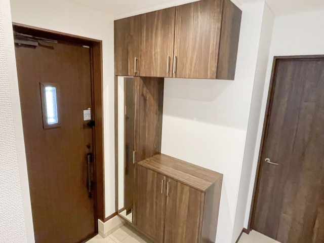 玄関には、靴だけでなく、ベビーカーやアウトドア用品などもしまえるシューズクロークや土間収納を設けると便利です。