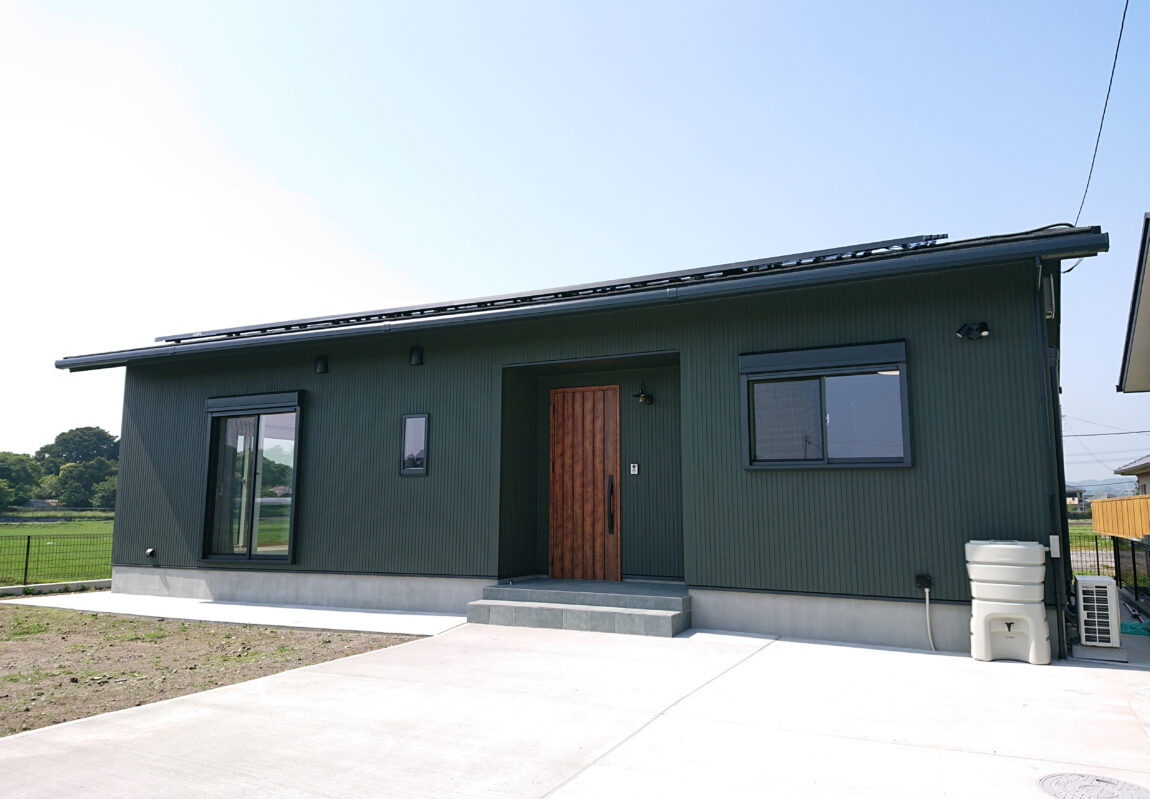 深みのあるグリーンの外壁がおしゃれな平屋。