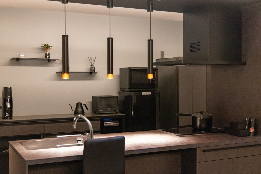 昼間は大きな窓から光が差し込み、夜は落ち着いたホテルライクな雰囲気に。